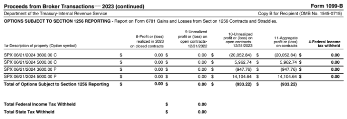 Custodians such as Schwab and Fidelity will report the gains and losses on Section 1256 contracts as part of the consolidated 1099 package. Read more from Schwab.